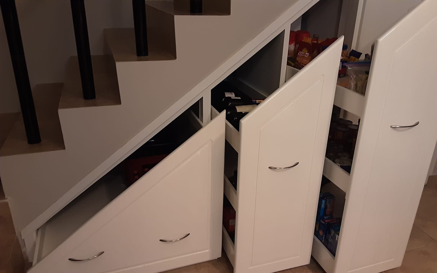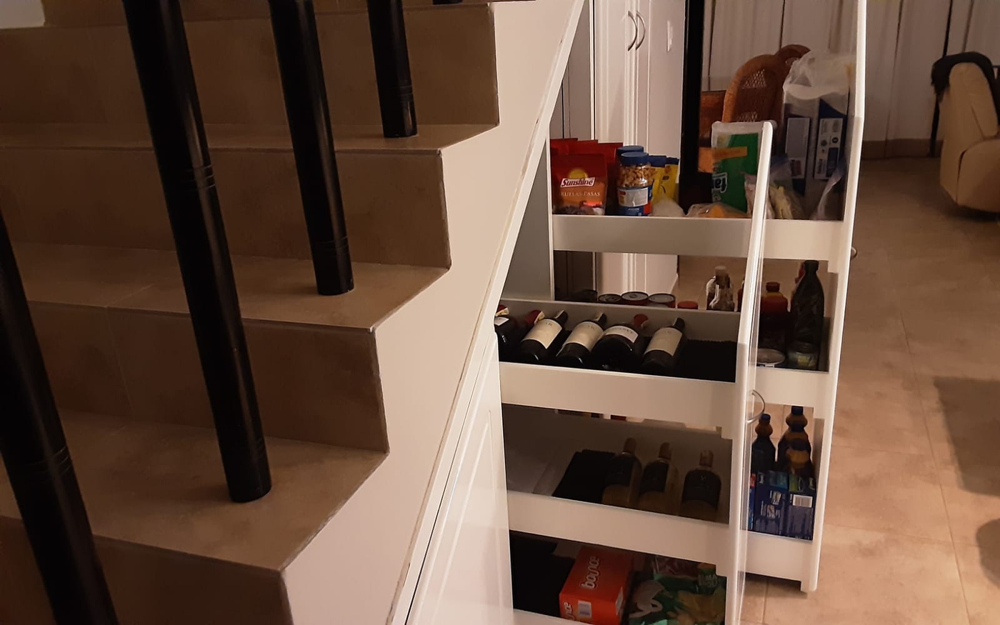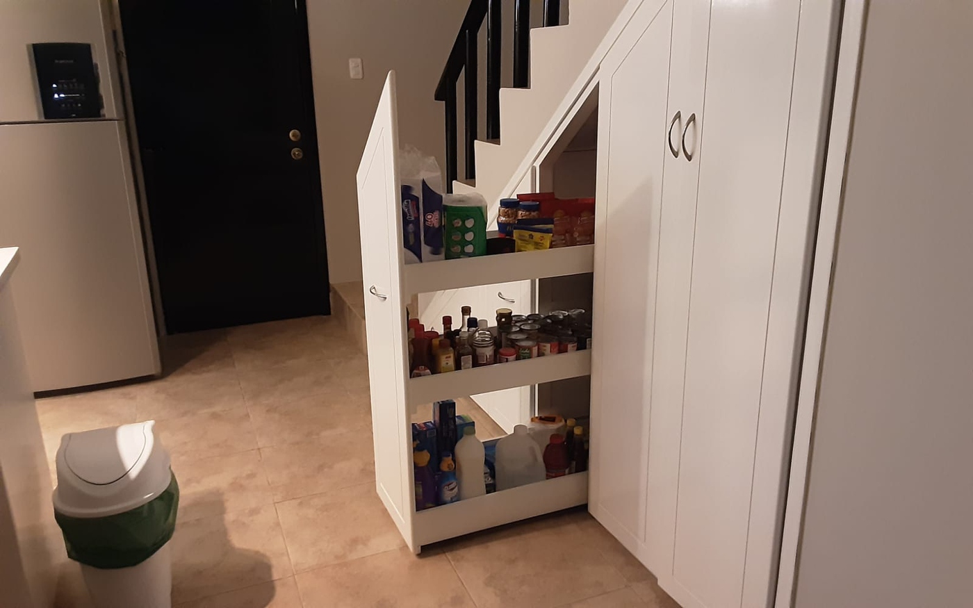 • Large pantry and understair roll-out organizers for efficient organization.