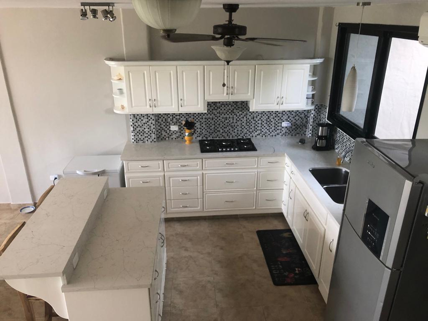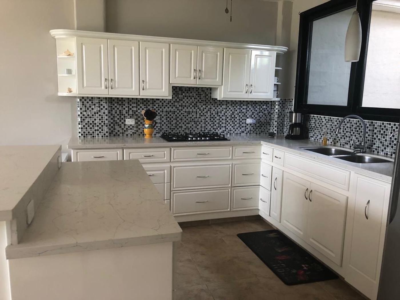 • Quartz counters and a new stainless steel double sink.