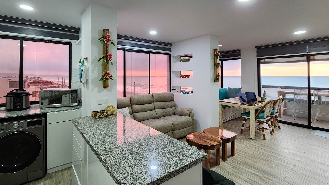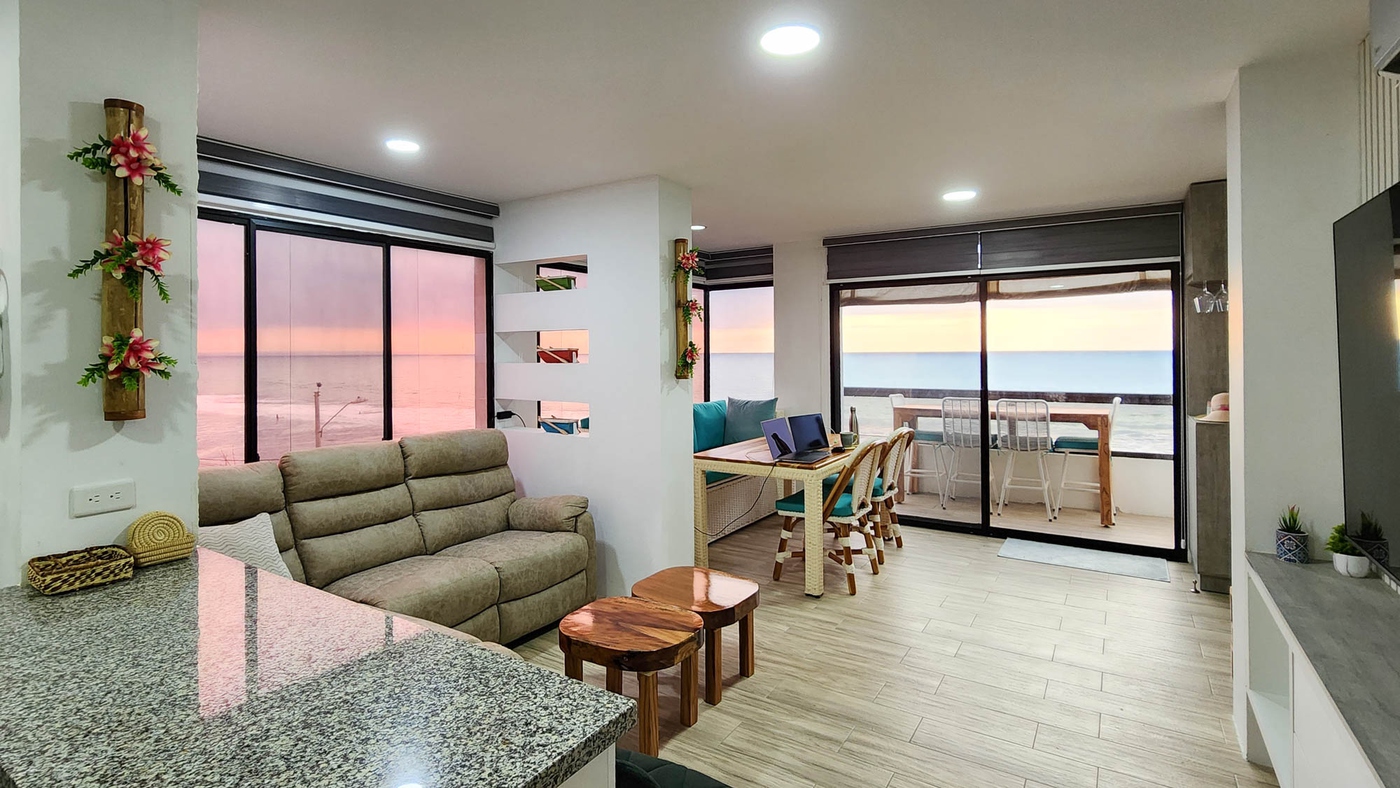 - Ubicación Frente al Mar: Despierta con el sonido de las olas y disfruta de atardeceres impresionantes todas las noches, durante todo el año. El apartamento está a solo unos pasos de la playa, ofreciendo vistas panorámicas del océano desde la comodidad de tu hogar.