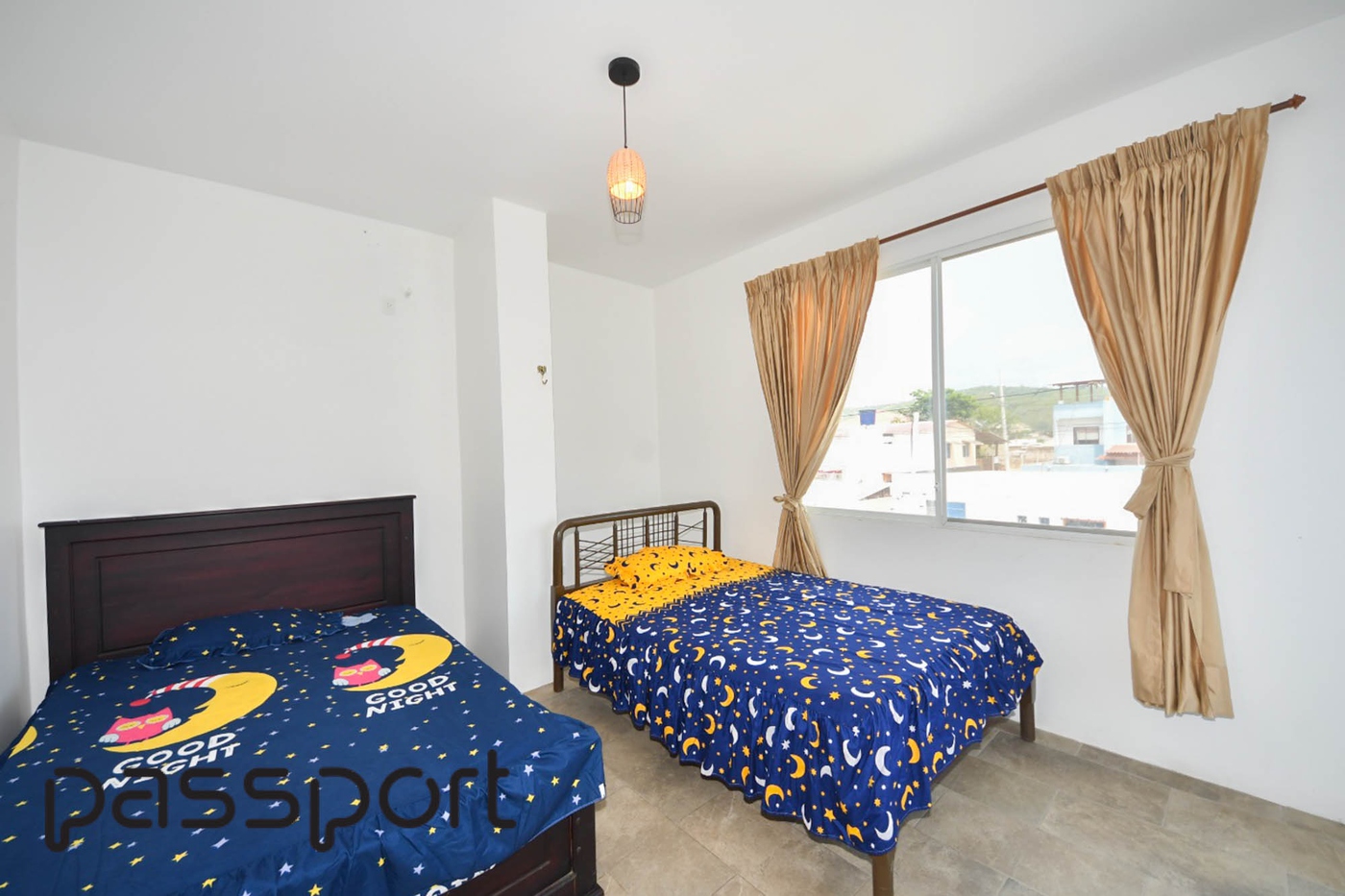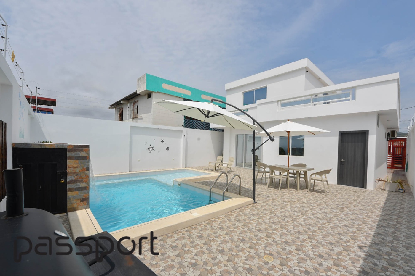 Bienvenido a nuestra impresionante casa de playa en Crucita Beach, un paraíso de retiro a solo 180 metros de las arenosas orillas. Este alquiler de vacaciones totalmente equipado ofrece una estancia cómoda y relajante para hasta 10 personas. La casa cuenta con aire acondicionado en la sala de estar y el dormitorio principal, asegurando un ambiente fresco y agradable durante su estadía. Las dos habitaciones adicionales están diseñadas cuidadosamente para proporcionar ventilación natural y no tienen aire acondicionado.