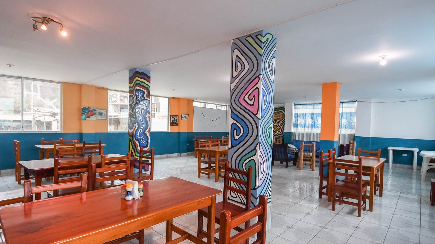 La propiedad tiene 4 niveles. En el primer piso hay un área exterior con una gran piscina y una sala de estar de bambú. En el interior encontrará una recepción, oficina, cocina y un área para un restaurante. Desde esta planta se puede acceder a las demás plantas únicamente mediante escaleras. La cocina está equipada con utensilios básicos de cocina, además de una estufa de gas, refrigerador, platos, platos y más.