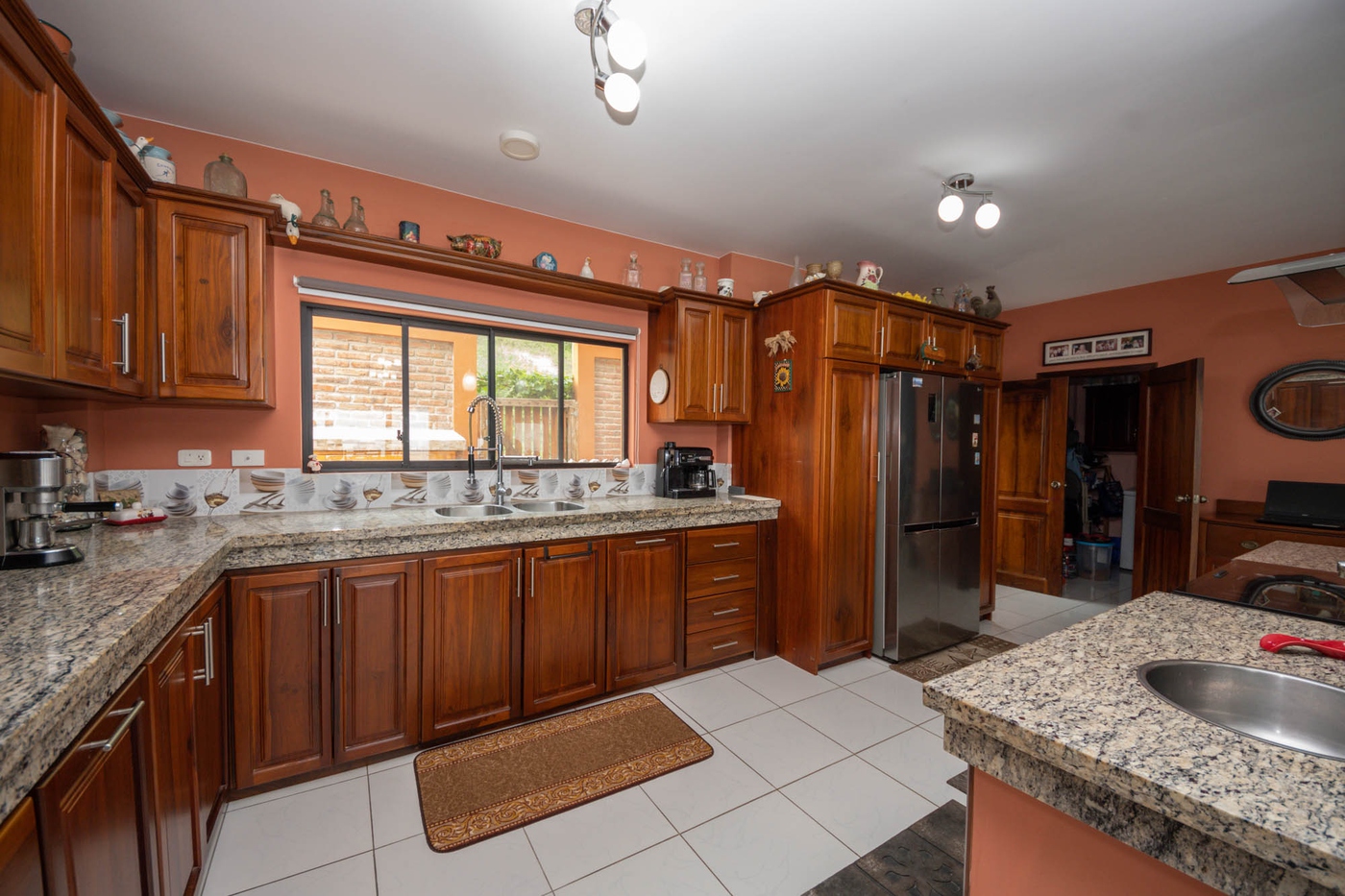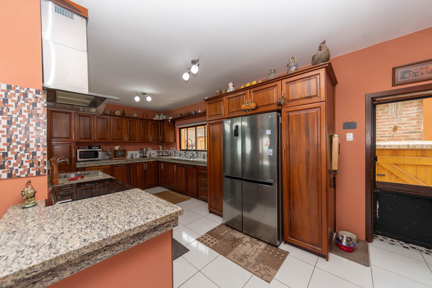 En la cocina te sorprenderá gratamente encontrar un horno de acero inoxidable bien colocado, estufa de acero inoxidable, encimeras de granito y un refrigerador de acero inoxidable, sistema de purificación de agua. Mucho espacio en la sala de estar y el comedor. Toda la casa tiene agua caliente con 2 calentadores de agua. Hay una cisterna de 12.000 litros para reservar agua y distribuirla a toda la casa.