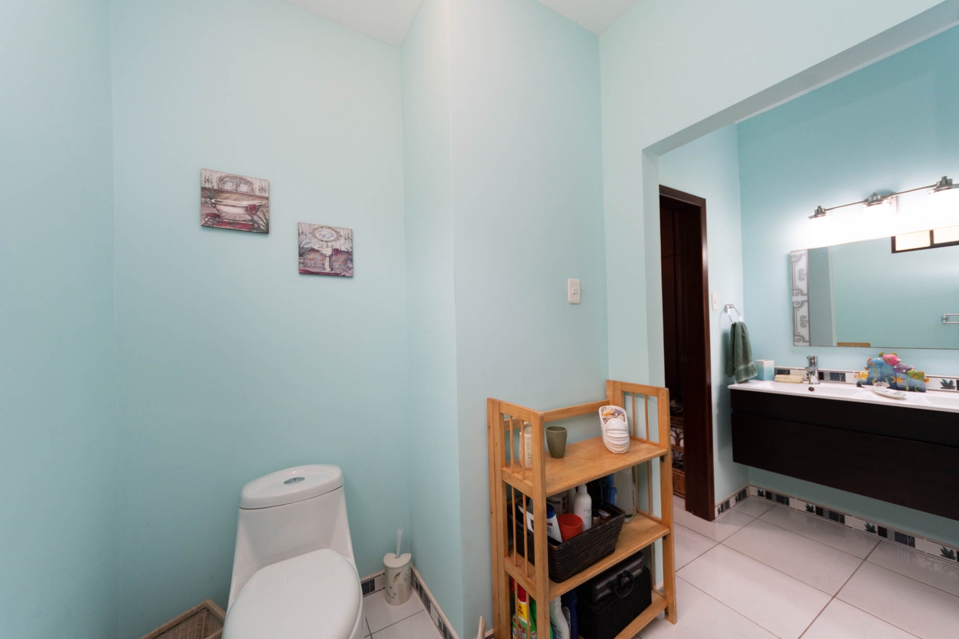Esta zona de la ciudad no tiene sistema de alcantarillado pero la casa tiene un gran tanque séptico construido para que pueda depositar solo papel higiénico desechable. Por lo general, la mayoría de las construcciones alrededor del área no le permiten desechar nada más que agua.