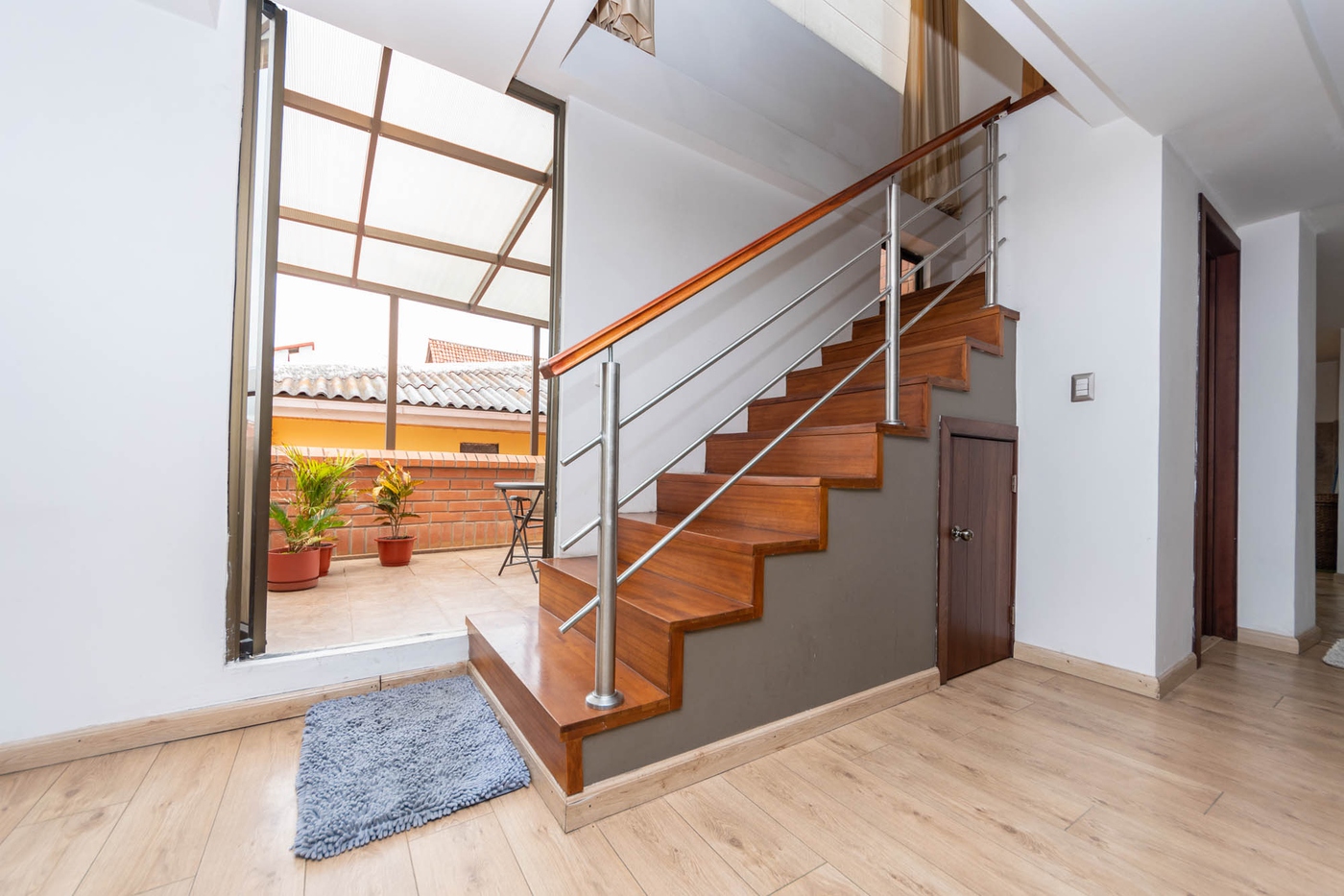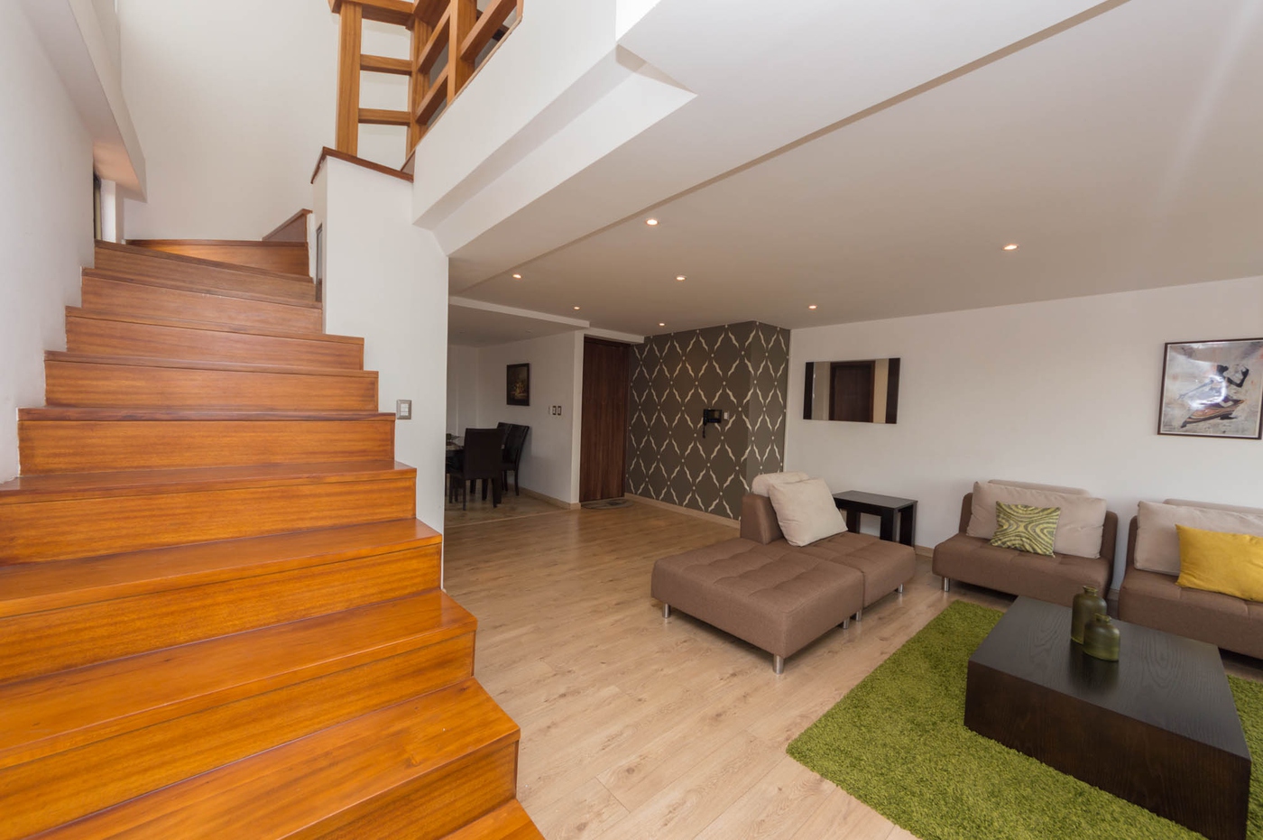 This Condo in Cuenca Ecuador is located in a building with only 8 apartments and self-access. The condo space is around 117m2 in a two-story unit, 2 bedrooms 2.5 bathrooms with a large living area downstairs. The bedrooms are both upstairs with a large living area between them. That living area can also be converted to a sleeping area.