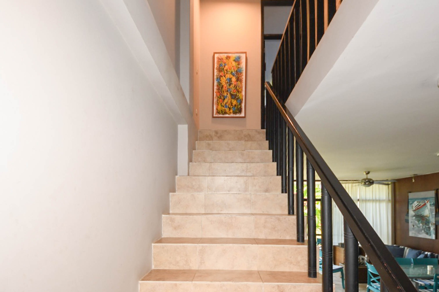 The entire house floors are tiled, providing a cool respite from the rainy season and summer heat.  The laundry is conveniently located close to the kitchen and under the stairs hiding from the eyes of visitors and kids.   So close to town, you won’t even need a bike!. A beachfront home located close to a full range of local amenities and ideally positioned for living convenience.  Only 30-40 minutes away from the shopping center and private school.